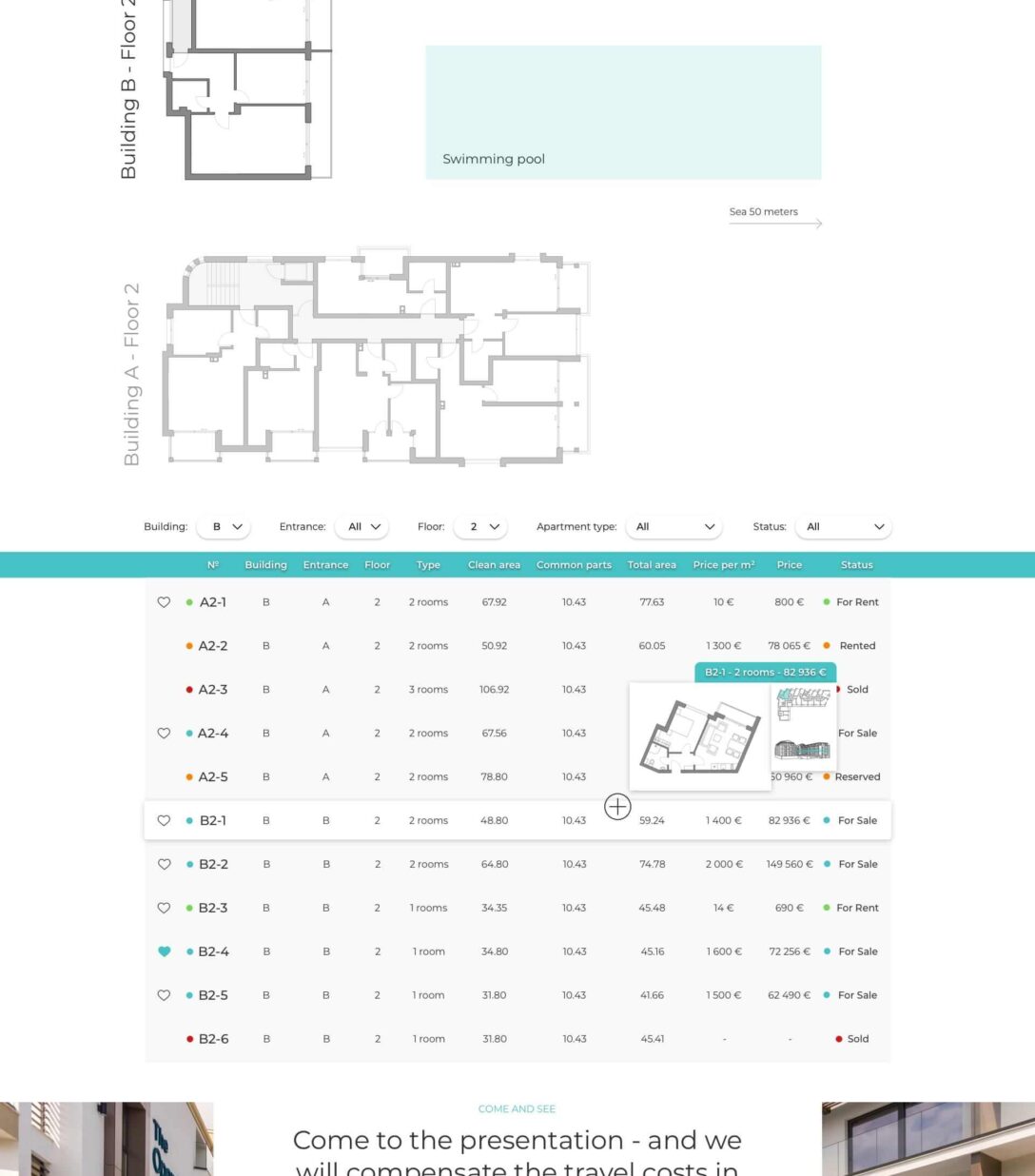 Създаденият от нас уебсайт за „Open Sea Residence“ значително увеличи интереса към проекта, като предостави на потенциалните купувачи всичко необходимо за информиран избор. Визуалните елементи и детайлната информация за разположението и характеристиките на имотите допринесоха за прозрачност и доверие към строителната компания.