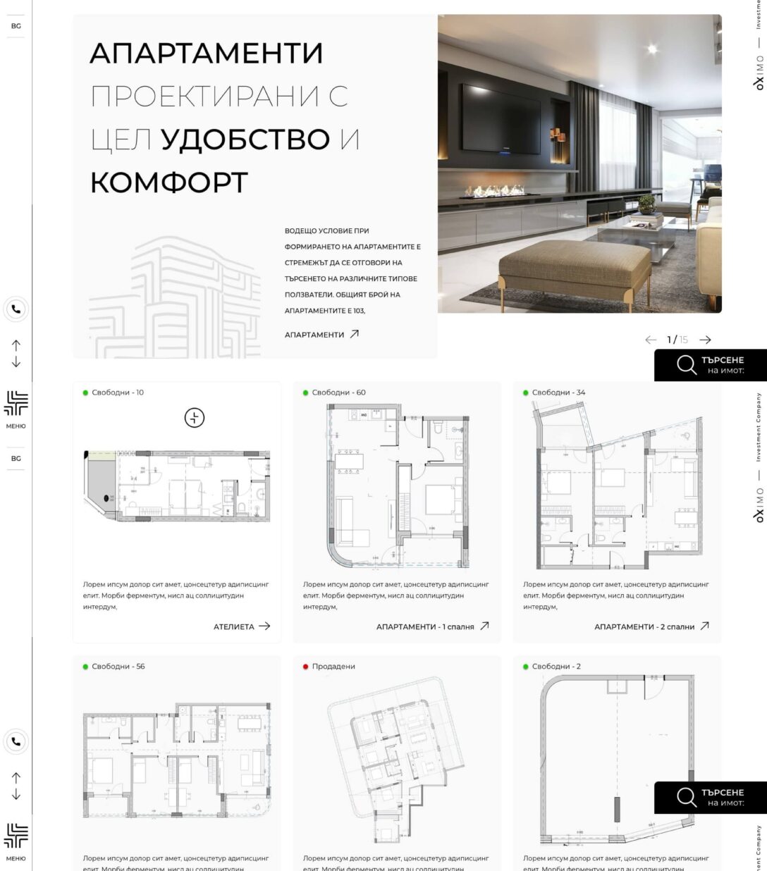 Със създаването на този уебсайт, ние улеснихме потенциалните купувачи да разгледат различните жилищни възможности, които Ox Residence предлага, да получат подробна информация за удобствата и услугите, и да визуализират своя бъдещ дом чрез интерактивни галерии и виртуални обиколки.Ox Residence Сграда ново строителство