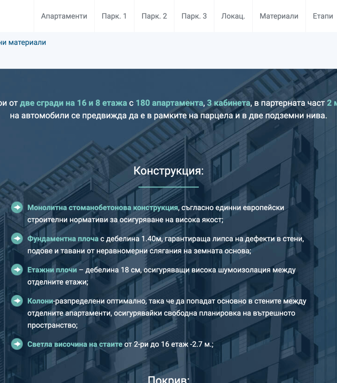 На началната страница бяха публикувани всички най-важни за потенциалния купувач информативни блокове с препратки към страници с по-детайлна информация: