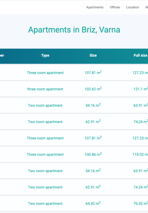 Бяха направени отделни страници с активни разпределения и таблици с информация за имотите в продажба, както и за локацията, използваните материали и препратка към корпоративния уеб сайт на инвеститора.